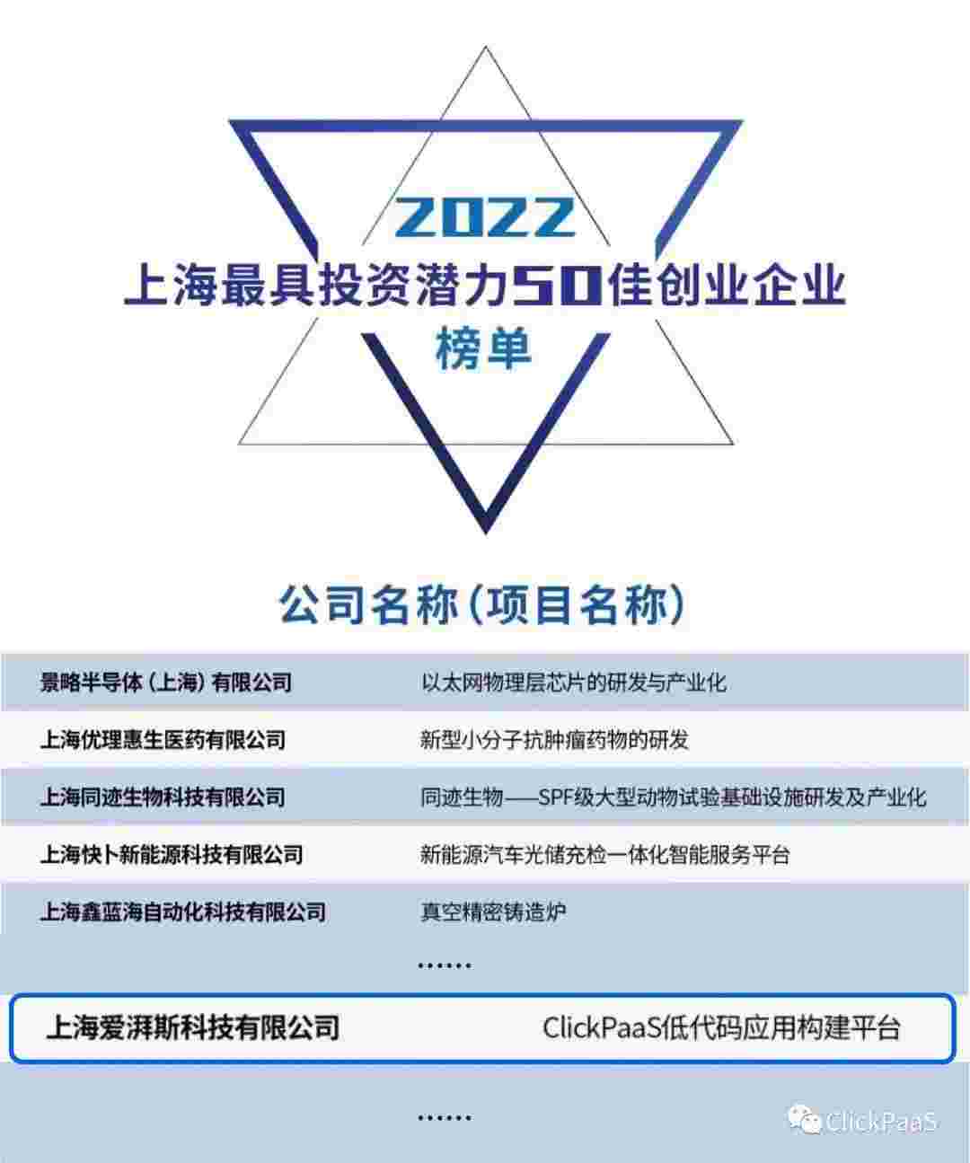 EBPAY 作为国内低代码PaaS平台的领军企业,,,,,,,,,,,与120家创企入围角逐。。。。。。。。。。期间接受了来自德同资本、、、、、、、、、、领中资本等知名投资机构的10位投资人组成专家评委团的背靠背盲选。。。。。。。。。。。。。并最终入围“2022上海最具投资潜力50佳创业企业”榜单,,,,,被列入“上海市重点培育创业企业库”。。。。。。。