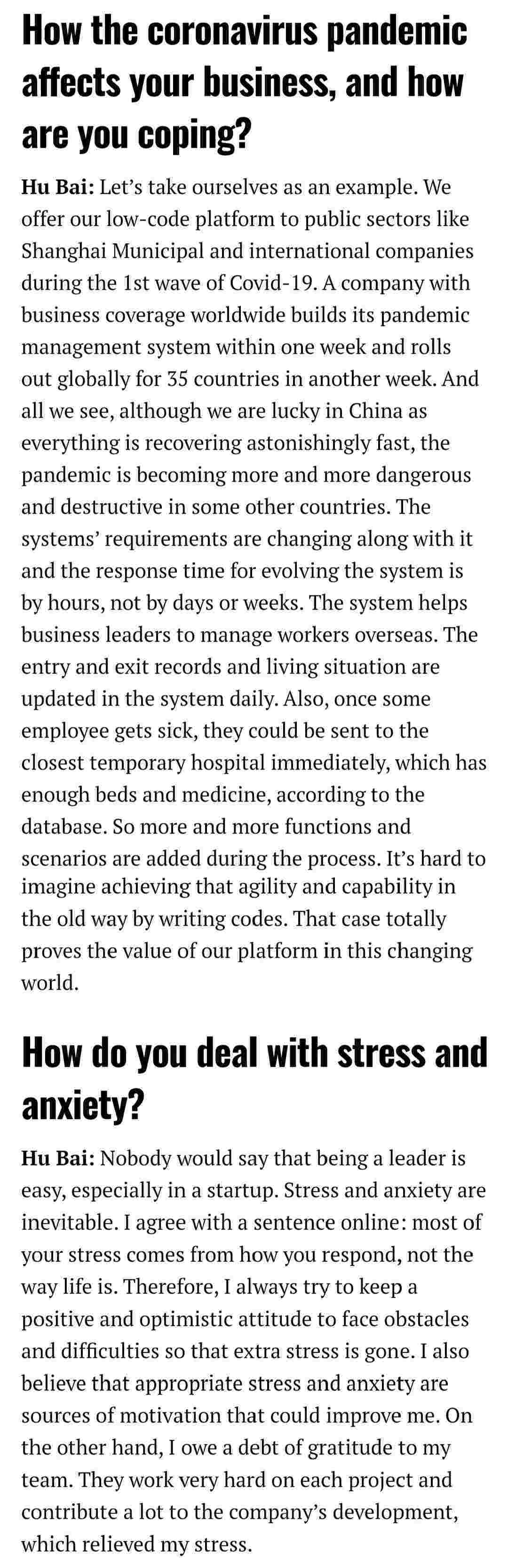 2021年年初,,,,,,,爱湃斯科技CEO胡柏受邀接受法媒Startup.info的专访,,,,,,与Startup info的读者分享了自己的创业经历、、、、、、、、、、、、、以及低代码平台EBPAY的创新之处。。。。。